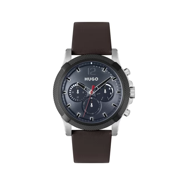 Hugo Boss 1530294 je muški analogni sat s kvarcnim mehanizmom, plavim brojčanikom i smeđim kožnim remenom. Pripada kolekciji Impress i nudi funkcije kronografa, datuma, dana u tjednu i 24-satnog prikaza vremena.