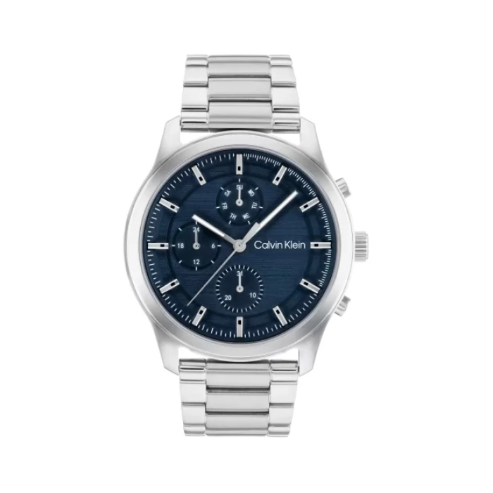 Calvin Klein 25200208 muški ručni sat ima tamnoplavi brojčanik, kućište i remen od čelika u srebrnoj boji. Promjer kućišta je 44 mm, vodootpornost do 30 m, a od funkcija posjeduje datum, dan i kronograf.