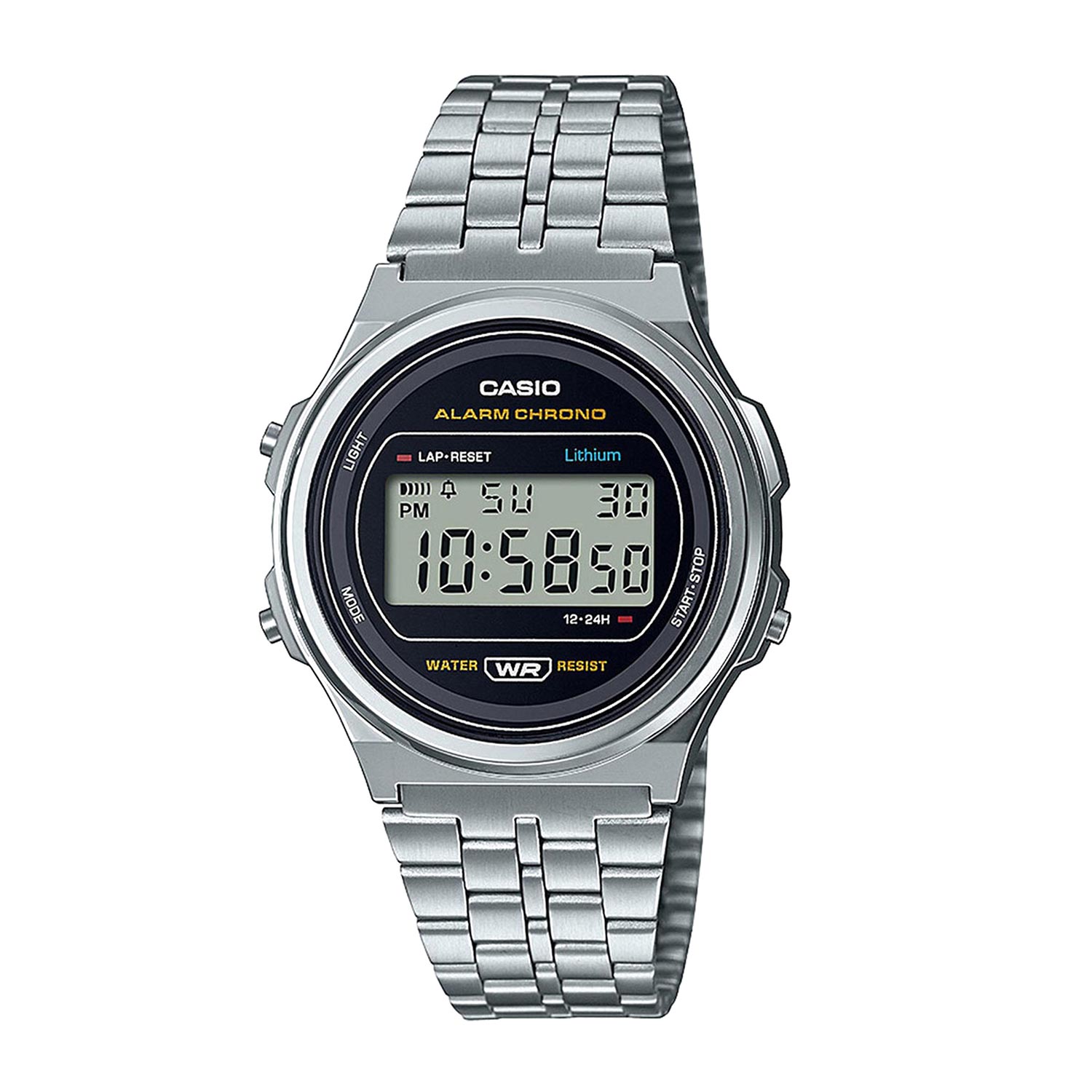 Casio A171WE-1AEF je uniseks digitalni sat iz Vintage kolekcije koji kombinira klasičan retro dizajn sa praktičnim modernim funkcijama. Karakterizira ga izdržljivo kućište od plastike u srebrnoj boji i elegantna narukvica od nehrđajućeg čelika.