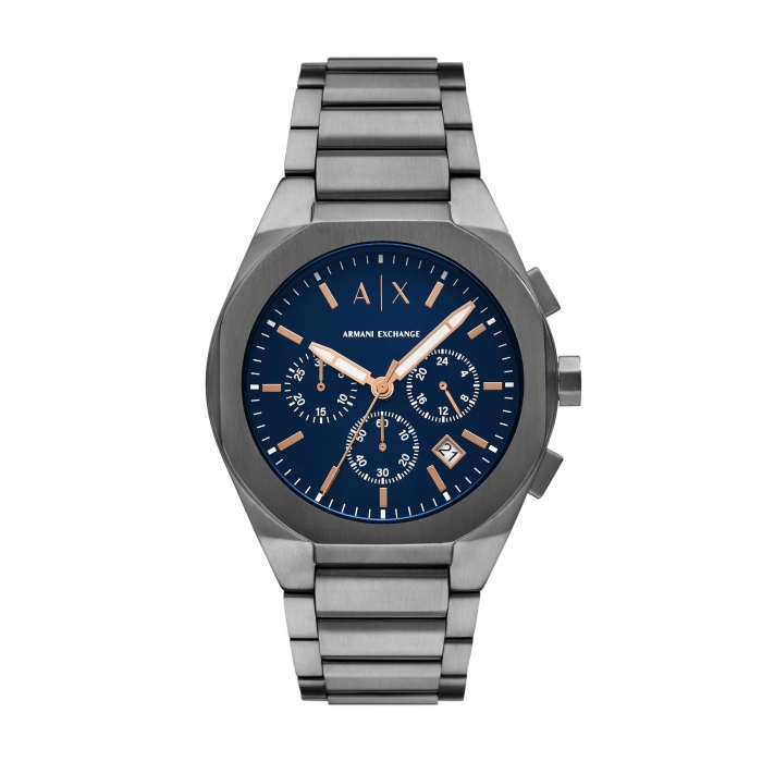 Armani Exchange AX4182 je muški kvarcni sat iz kolekcije Rafael Chronograph s kućištem i narukvicom od nehrđajućeg čelika u sivoj boji, s upečatljivim plavim kronografskim brojčanikom. Ovaj sat poznat je po spoju modernog dizajna i pouzdane funkcije, prikladan za svakodnevno nošenje i posebne prigode.
