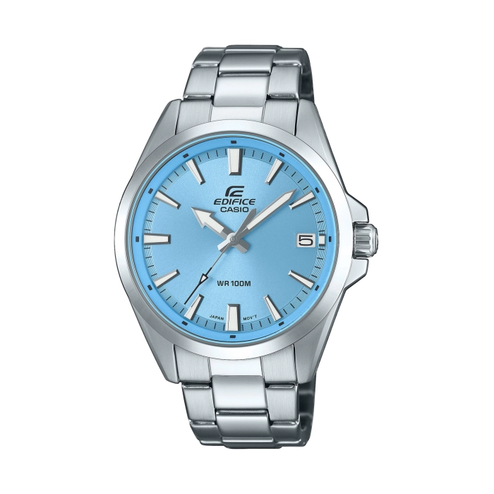 Casio Edifice EFV-100D-2BVUEF je muški analogni sat koji spaja sportski karakter s klasičnim dizajnom, a odlikuje se robusnom konstrukcijom od nehrđajućeg čelika i 100-metarskom vodootpornošću.