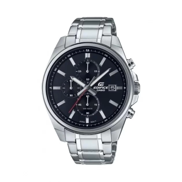 Casio Edifice EFV-610D-1AVUEF je muški analogni sat sa sportsko-elegantnim stilom koji kombinira funkcije kronografa i datuma sa robusnom konstrukcijom od nehrđajućeg čelika.