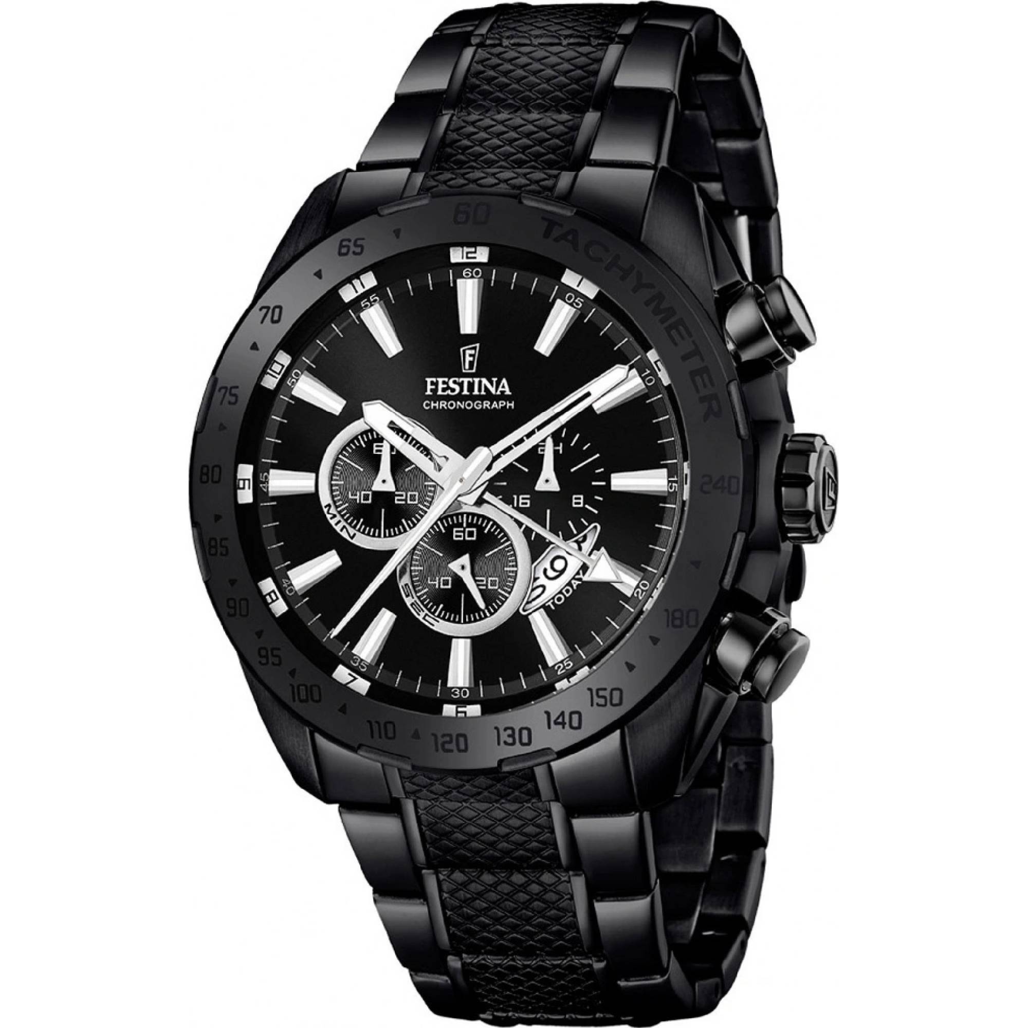 Festina F16889-1 muški sat ima remen od nehrđajućeg čelika u crnoj boji, upotpunjen brojčanikom u crnoj boji. Brojčanik sata ima promjer od 44 mm sa funkcijom kronografa, te prikazom datuma. Sat je s kvarcnim (baterijskim) pogonom, a što se tiče vodootpornosti, podnosi tlak do 10 atm.