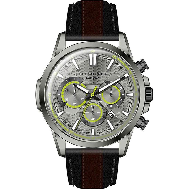 Lee Cooper LC07493.061 je elegantan muški ručni sat s multifunkcijskim prikazom i japanskim quartz mehanizmom. Karakterizira ga sivo kućište, sivi brojčanik i crno smeđi kožni remen. Sat prikazuje vrijeme analogno, a dodatni podbrojčanici često uključuju funkcije kao što su datum, dan u tjednu ili 24-satni prikaz.