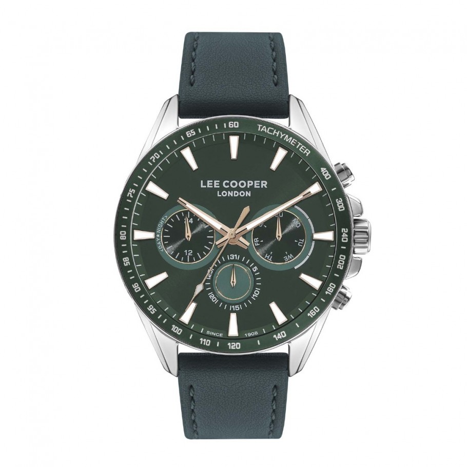 Lee Cooper LC07598.377 muški ručni sat je moderan i funkcionalan dodatak koji kombinira klasični stil s modernim zelenim detaljima. Ovaj model pokreće precizan japanski kvarcni mehanizam, a karakterizira ga upečatljiv zeleni brojčanik s višenamjenskim prikazima.