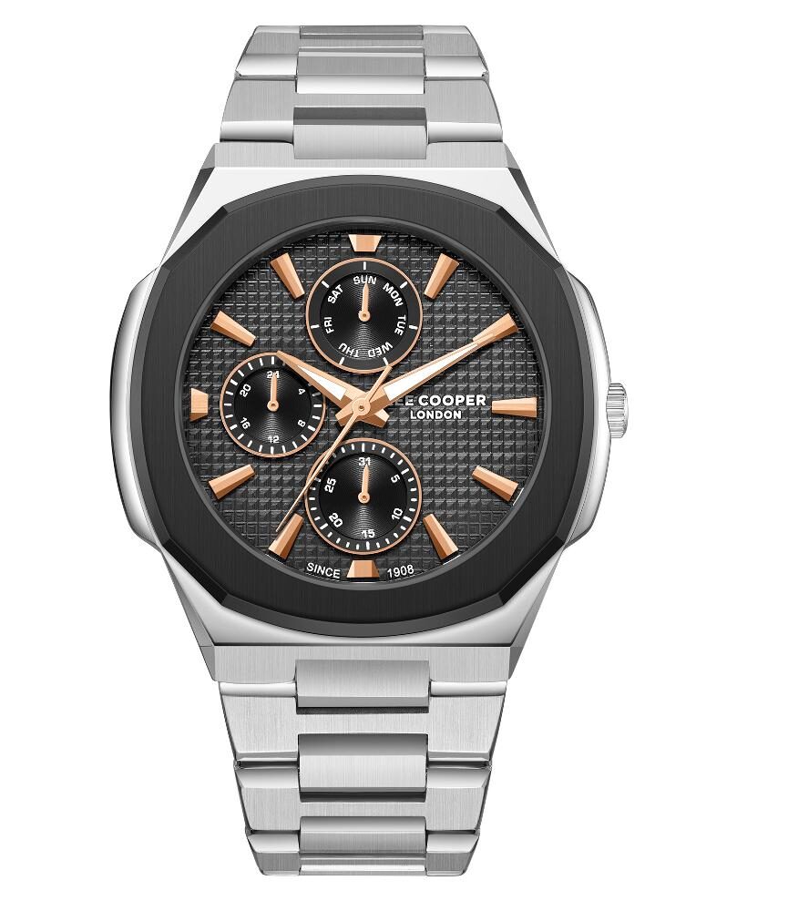 Lee Cooper LC08047.360 je muški analogni multifunkcijski ručni sat elegantnog dizajna. Odlikuje se srebrnim metalnim kućištem i remenom od nehrđajućeg čelika, crnim brojčanikom, te VX7NE1 mehanizmom. Sat je vodootporan do 50 metara što ga čini idealnim za svakodnevno nošenje i casual stilove.