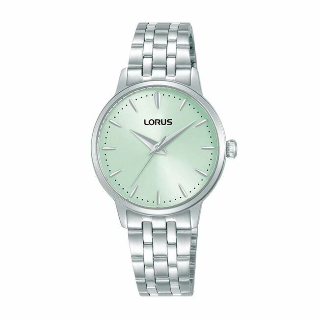 Lorus RG315XX-9 je elegantan ženski ručni sat s kvarcnim mehanizmom i upečatljivim zelenim brojčanikom, upotpunjen narukvicom i kućištem od nehrđajućeg čelika srebrne boje.