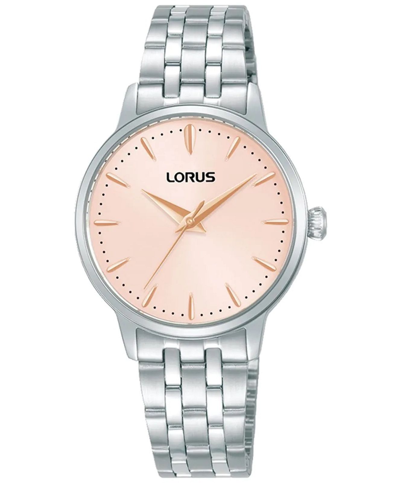 Lorus RG319XX-9 je elegantan ženski ručni sat iz Classic kolekcije, poznat po svom minimalističkom dizajnu sa srebrnim kućištem i narukvicom od nehrđajućeg čelika te nježnim ružičastim brojčanikom.