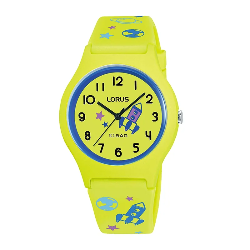 Lorus RRX47HX-9 je dječji analogni sat s kvarcnim mehanizmom i dizajnom inspiriranim svemirom, koji je i izdržljiv i vodootporan. Ovaj model je dizajniran kao zabavan, moderan i robustan sat za djecu koja su entuzijasti svemira.